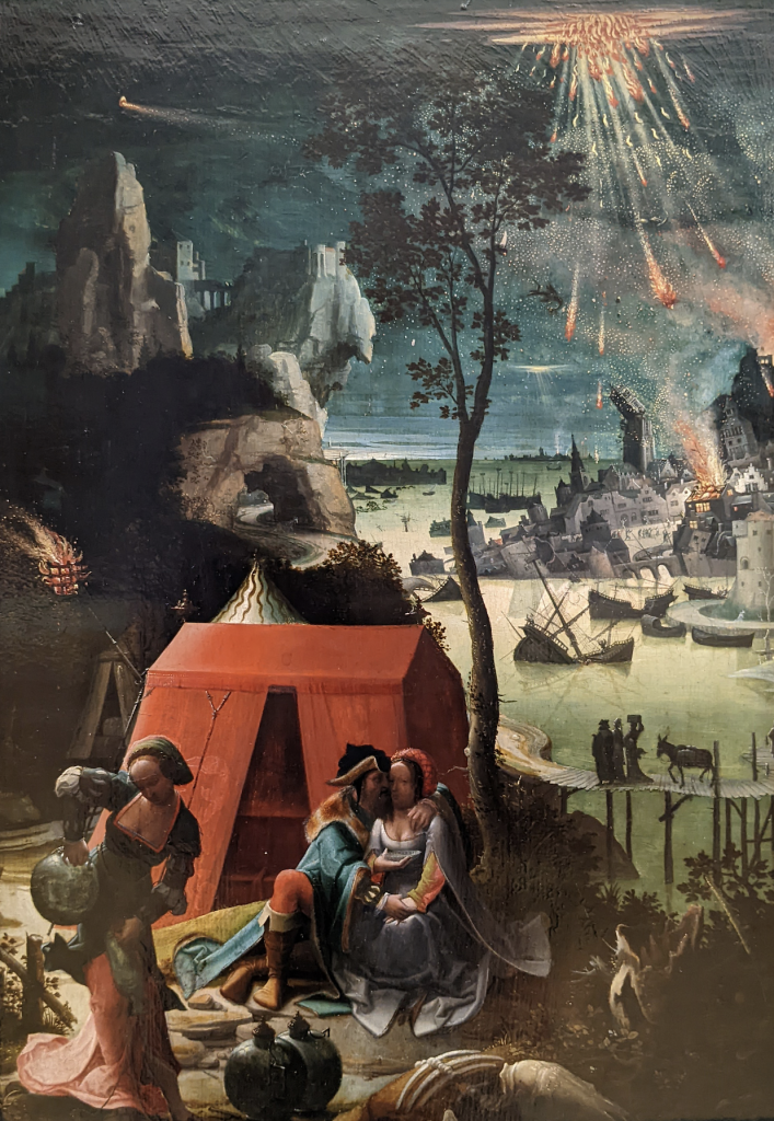 Op dit tafereel van Lucas van Leyden speelt drank een belangrijke rol. De dochters van Lot voeren hun vader dronken opdat hij niet meer zou weten wat hij deed en bij hen zonen zou verwekken. En zo geschiedde. Het is een Oudtestamentisch verhaal over incest en volgt op de vernietiging van Sodom en Gomorra op de achtergrond.